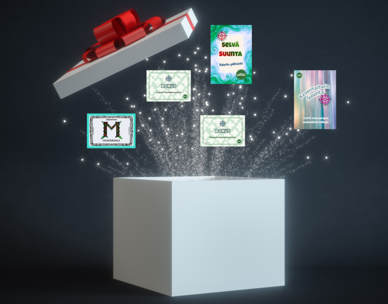 Selvä Suunta – Puhetta päihteistä, Kaveritaiturin Suunta, MeikäMeikä Neurokirjolla -teemapakka sekä Venhemmuuden Suunta -peliin Bonuskorttipakat Eroperheille ja Sijaisvanhemmille ovat valmiina paketoitaviksi sinulle JA TULOSSA LUOKSESI, kun teet tilauksen https://pelinikkarit.fi/kauppa/
